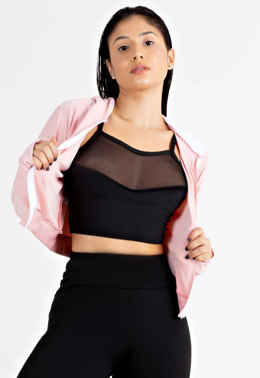 Casaco Fitness Rosê com Branco